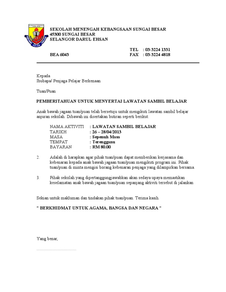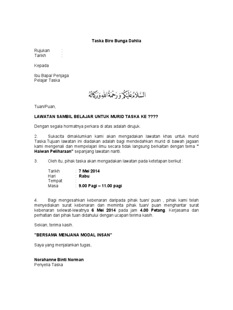 Contoh surat makluman lawatan kepada. Contoh Surat Kebenarn Ibu Bapa Kem Bestari Solat Buku Panduan Guru.
